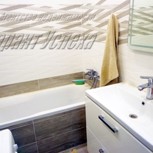 Установлен 1 стеклопакет ПВХ в зале. Напольное покрытие - паркет и плитка. Потолки выровнены и окрашены. Межкомнатные двери - дерево под лак со стеклом. Входная дверь - двойная деревянная. Санузел облицован плиткой нового образца, заменена сантехника.