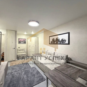 Площадь квартиры составляет 27.9 м², а кухня — 4.9 м². Квартира находится в отличном жилом состоянии: здесь уже заменены сантехника и электрика, на полу - ламинат. Двери из дуба добавляют элегантности, а надежная металлическая входная дверь обеспечивает безопасность.