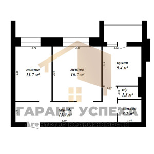 Удобная планировка: две просторные комнаты 18,4 кв.м, и 16,0 кв.м, кухня 11,1 кв.м, совмещённый санузел, коридор 9,6 кв.м.