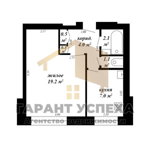 Площадь - 38,1 м² (по СНБ 38,9 м²), кухня - 5,4 м².