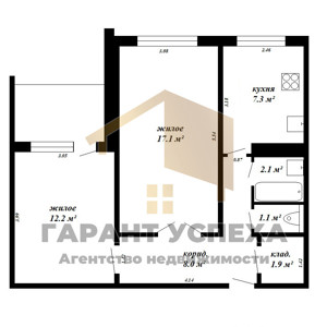 - Площадь: 51 кв.м, жилая - 30 кв.м, кухня - 7 кв.м.