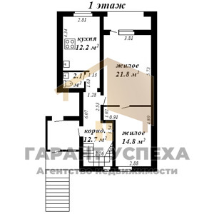 Общая площадь – 218,8/168 кв. м, жилая – 98 кв. м, кухня совмещена с просторной гостиной. Три изолированные жилые комнаты 17,57/24,91/21,49 кв. м.