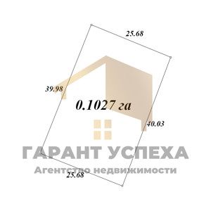 Земельный участок правильной формы размерами 25 х 40 м площадью 10,3 сотки. Форма собственности земли -